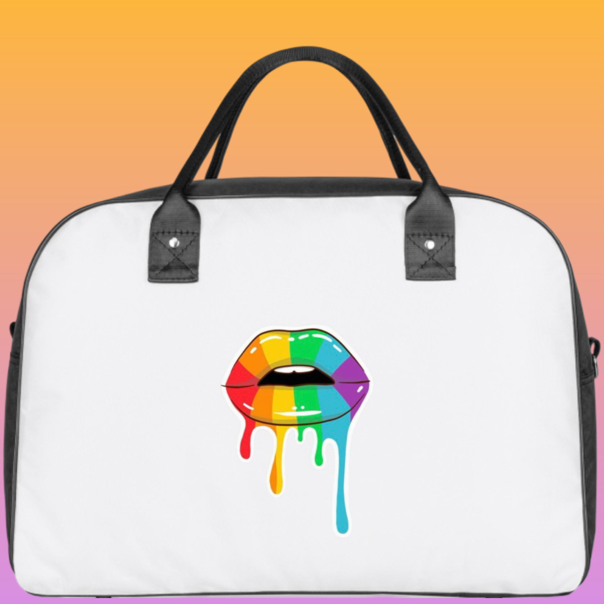 Show off your pride with our Pride Lips bag! Made of 100% nylon, it's scratch proof and easy to clean. Comes with zippers for added convenience and can be used over the shoulder or by hand. 🌈 Kiss boring bags goodbye!